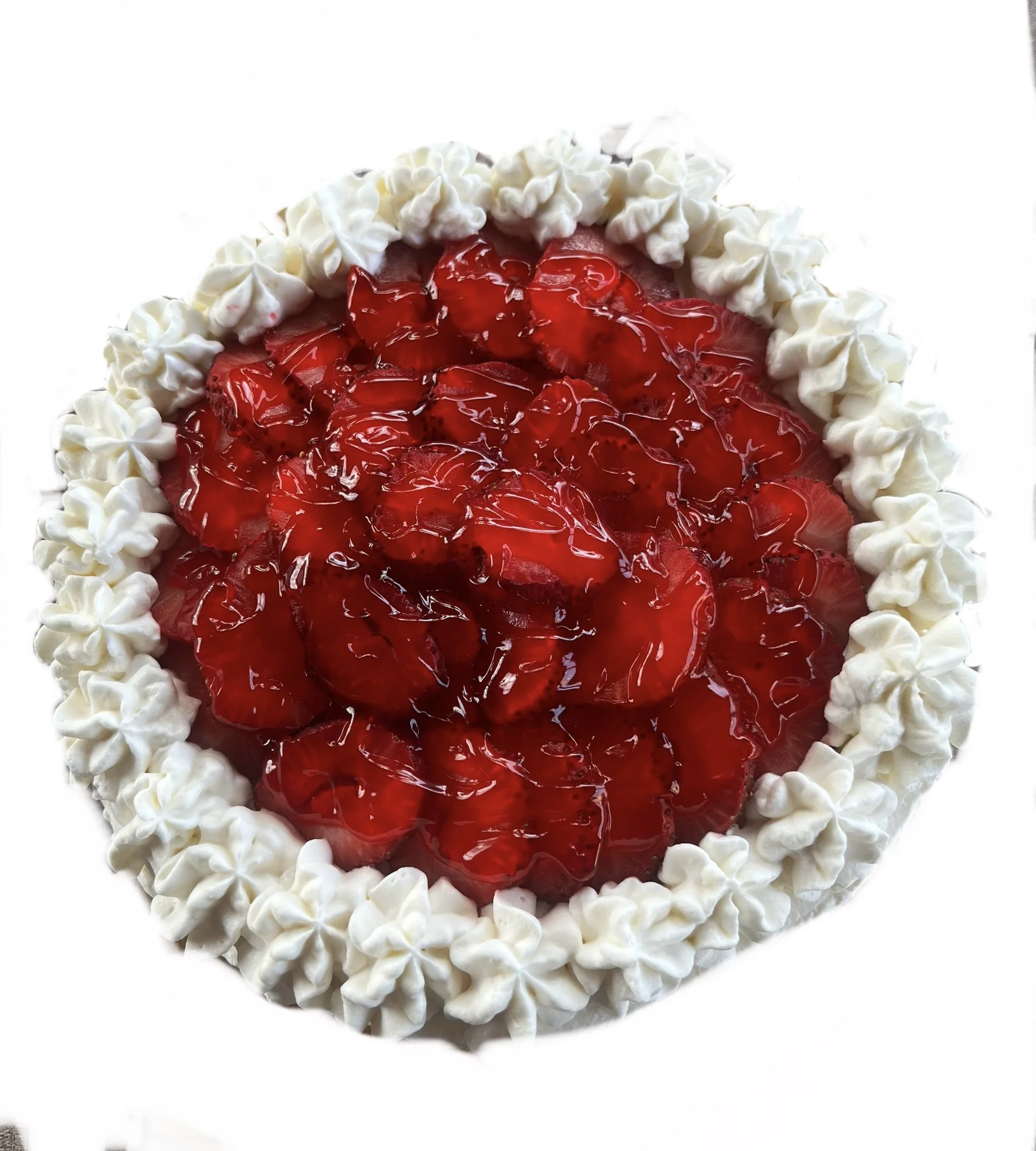 Vanilla cake, fresh homemade whipped cream, and packed with fresh strawberries